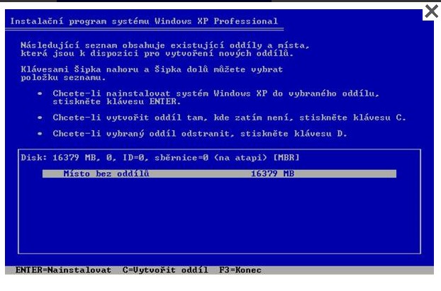 tady si ty oddíly postupně vytvoříš a zadáš jejich velikost,potom si jeden z nich vybereš a dáš enter...tam se ti nainstaluje systém