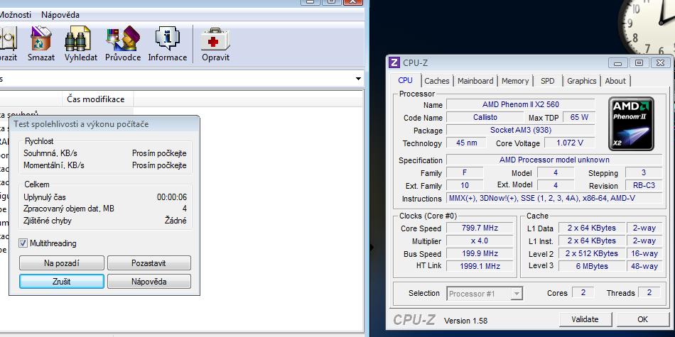 Tak jsem zkusil ten test ve winRaru , spustil a vůbec nic se nezměnilo ,ani když to pokračovalo... Pak jsem zkusil ten test CPU speed a maximum bylo 797 Mhz :(((