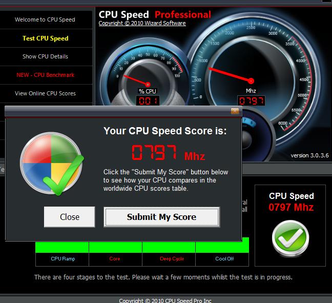 CPU Speed Professional je aplikace sloužící k zjištění maximálního výkonu vašeho procesoru AMD či Intel. CPU Speed Professional podporuje téměř všechny vyráběné procesory na trhu a je velmi ceněná zejména pro svoji přesnost a rychlost. Moderní grafické prostředí programu se bude líbit nejednomu uživateli CPU Speed Professional. K dispozici máte hned několik druhu testů. po kterých se vám zobrazí detailní informace o všech možných druzích přenosových rychlostí vašich procesorů. Kromě monitorování procesoru dokáže CPU Speed Professional zobrazit i základní informace o celém systému jako základní deska nebo RAM paměti a podobně. Po skončení testu pomocí CPU Speed Professional můžete srovnat vaše výsledky na internetu s ostatními světovými uživateli CPU Speed Professional. Celá aplikace je zcela zdarma.