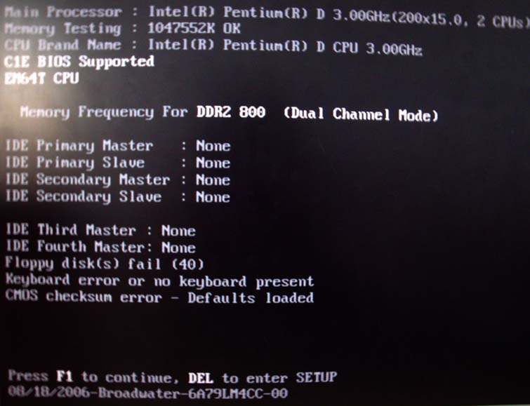 Najeď do BIOSu a nastav co je potřeba, taky ti to píše že nemáš připojenou klávesnici...