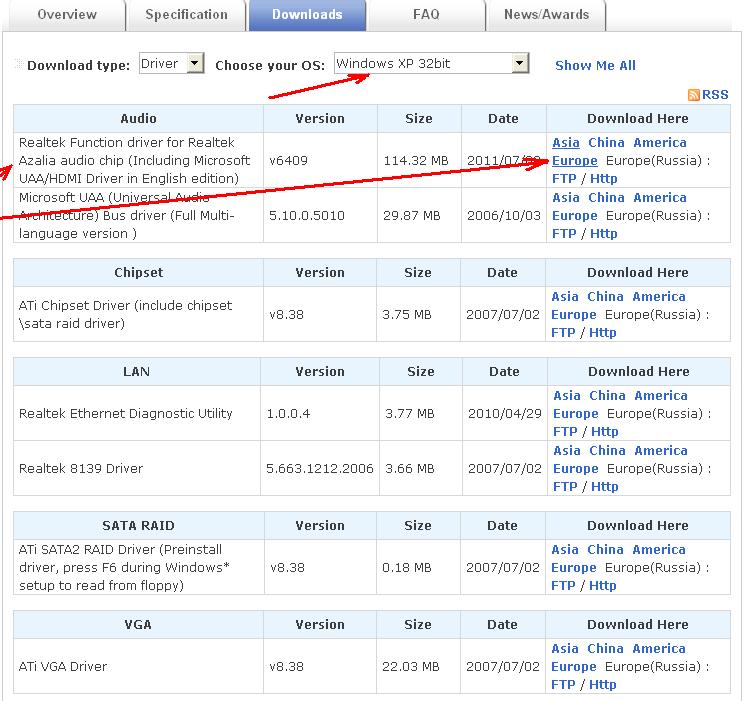 Choose your OS: tady musíš nejprve vybrat Windows XP 32bit (alespoň předpokládám že nemáš anglický 64bitový tentononc)
