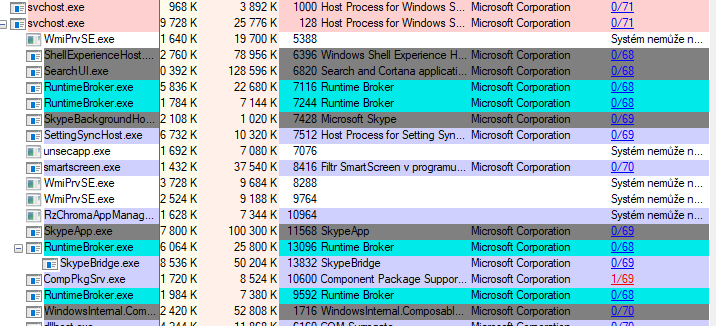 RuntimeBroker.exe 5 456 K 5 840 K 16304 Runtime Broker Microsoft Corporation 0/68