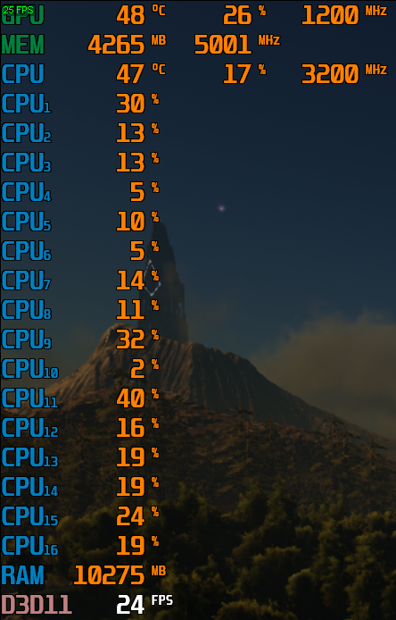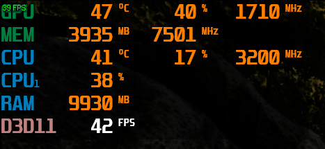 tady je ukazatel fps a ostatnich veci ze hry ark na stredni detaily bezi na 40 fps na gtx 1060 běžela na stejné nastavení na 90 fps