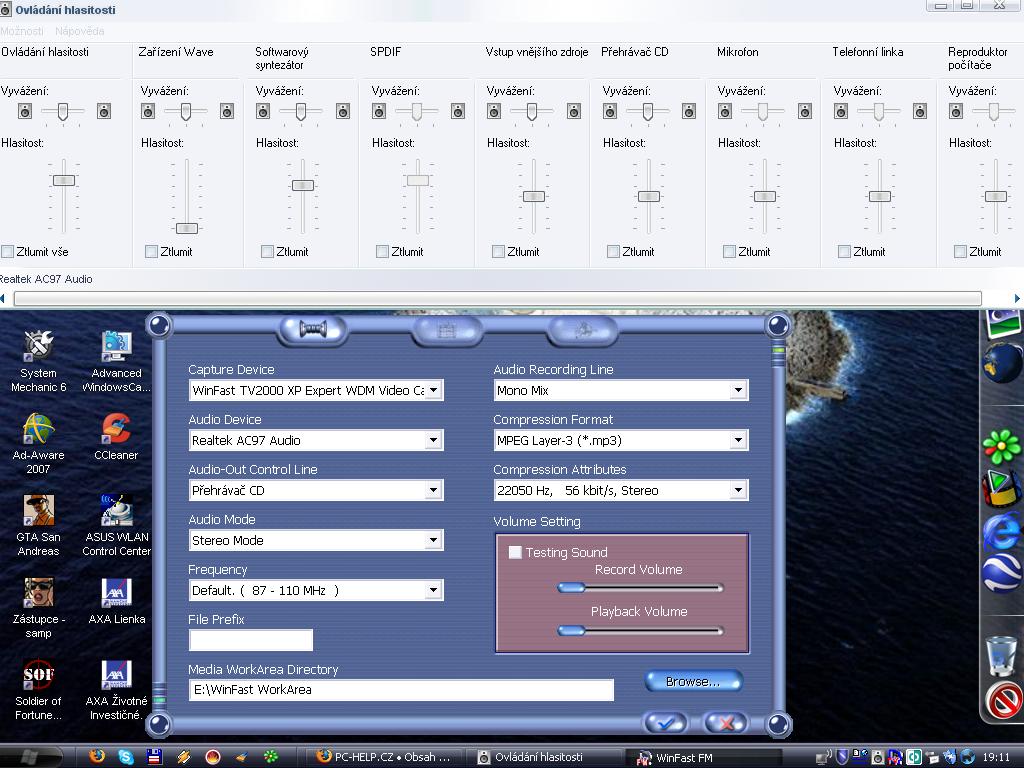 koukal jsem , že ta karta má interní propojení se zvukovkou (4piny).Jo a to dáváš do zvukovky jako vstup pro CD?Tak potom je to v nastavení zv. karty . Nemáš sjetý mixing na CD?Nebo ve win -všechny programy-příslušenství -zábava -ovládání hlasitosti.