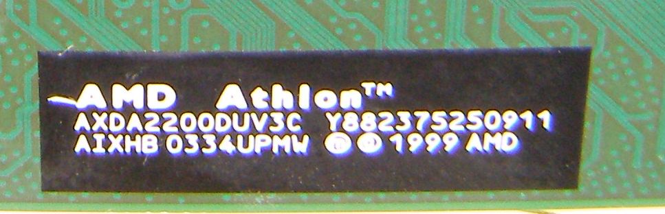 Nějaký cca 8 let starý AMD Athlon . Z hlavy si to nepamatuju a momentálně se na něj můžu podívat jen zvenčí. Navíc to mám zase zadělané:-) Z fotek, které jsem dělal jsem vypreparoval toto: