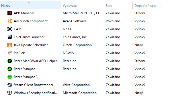 Zkus čisté spuštění: https://support.microsoft.com/cs-cz/hel ... in-windows
