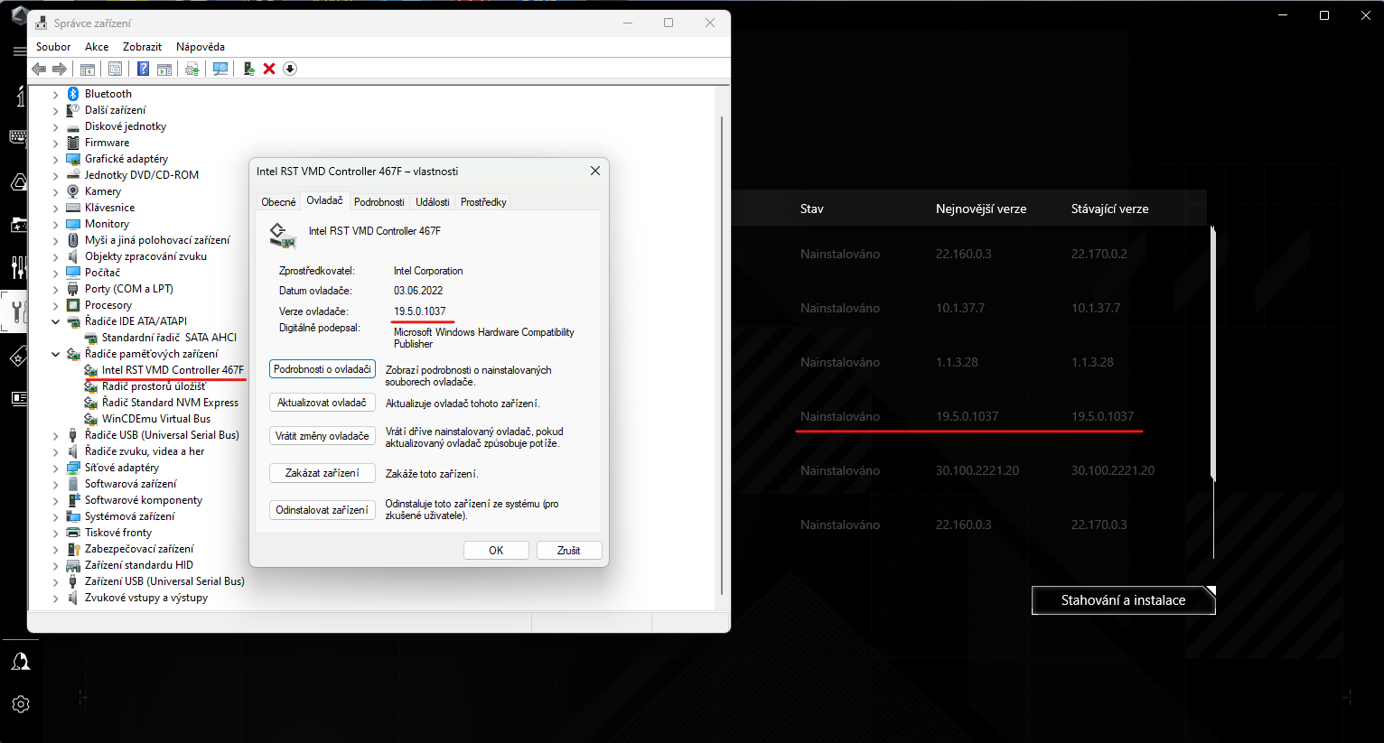 Ovládač SATA-AHCI na stránke Asus verzia 19.5.0.1037 novší je 19.5.1.1040