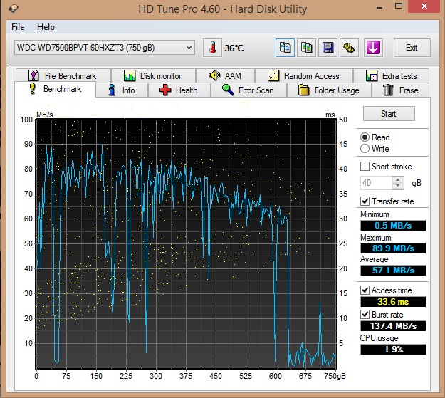 Doporučuji spustit např. Mini Windows XP z Hirens Boot CD a benchmark v HD Tune provést v něm. Pak se uvidí.