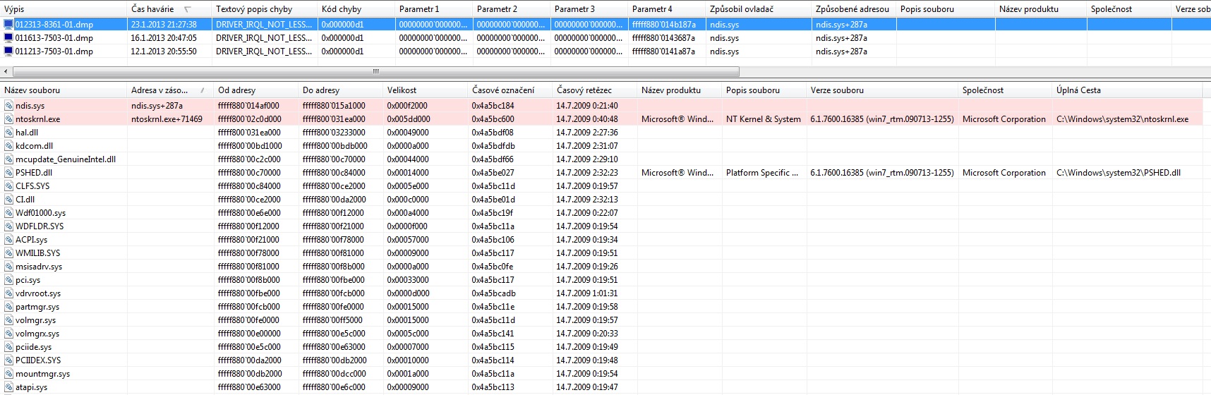 Problém je v síťovém subsystému. Hoď sem ty minidumpy.