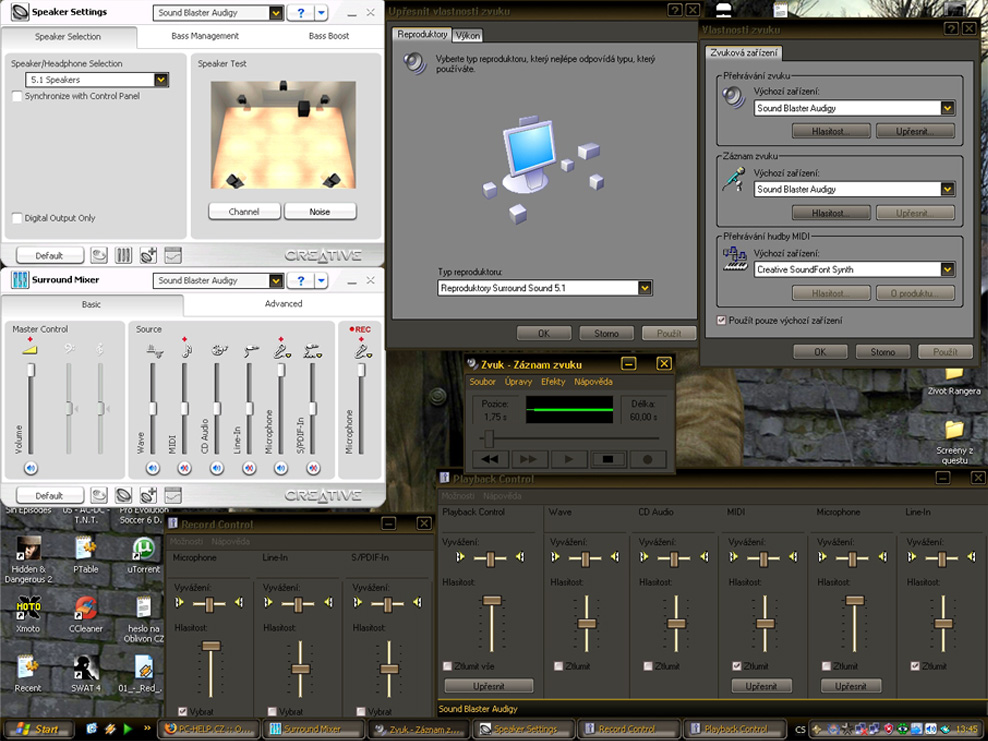 mam mensi problem... Uz chvili pouzivam zvukovou kartu Creative Sound Blaster Audigy SE Nejaky čas nepouzivam mikrofon, ale ted ho zase potrebuji, jenomze po vyzkouseni tří mikrofonu vsemoznych znacek a velikosti zjistuji, ze v Záznamu zvuku pres Win XP (Start -> Příslušenství...) me ukazatel vykazuje opravdu malou hlasitost, respektive ukazatel nedela vlnky, ale jen takovou silnejsi caru a abych vubec slysel, co jsem do MIC rikal, musim repráky (Logitech 5.1) zesilit skoro na maximum... V nastaveni hlasitosti v ovladacich panelech mam hlasitost ZÁZNAMU mikrofonu na max. a to samé i v softwaru prilozenemu ke zvuk. karte. Mikrofon mam zapojeny ve spravnem portu, ponevadz mi zbyva jen jeden a ten je na MIC. Uz opravdu nevím co s tím, reinstal ovladaču nepomohl, aktualizace taky ne a vsechny mikrofony co mam delaji totez a jsou 100% funkcni. Mam i integrovanou zvuk. kartu, ale tu mam v BIOSu zakazanou a ve Spravci zarizeni ani v Everestu není. Mimochodem na tech dvou predchozich kartách mikrofony šlapaly jak o zivot... Za rady predem dekuji, Zdraví Writer