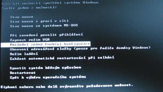 Zkus po zapnutí ihned opakovaně mačkat F8 a pokud to naskočí vyber poslední funkční konfigurace.