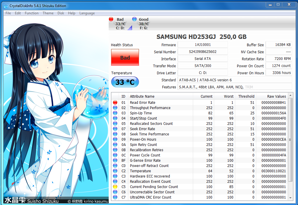 To vysvětluje ty chyby ve čtení z povrchu disku. Pořiď si nový a ušetříš si spoustu starostí se ztrátou důležitých dat.