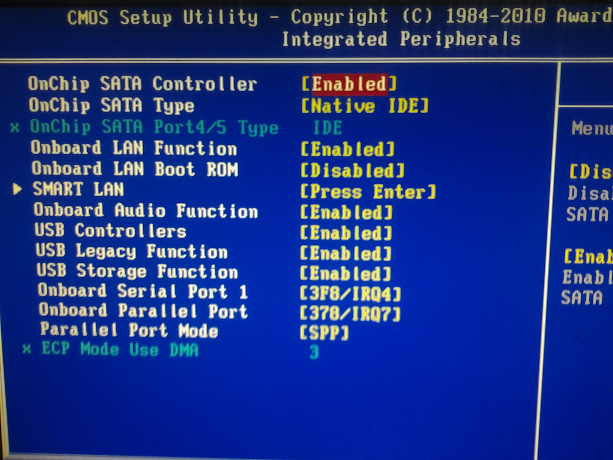 Restartuj počítač a v nastavení BIOSu si nastav OnChip SATA Type nastav na AHCI, OnChip SATA Port4/5 Type na As SATA Type.