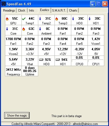 Zkus si stáhnout spíš tohle než speed fan: http://www.slunecnice.cz/sw/hwmonitor/ dej screen a vlož ho sem