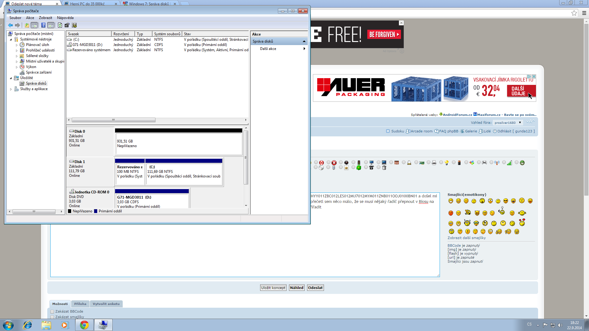 Zdravím, mám zase problém :( :D koupil sem na vaši radu tenhle PC http://www.alfacomp.cz/php/basket.php?i ... OJ0100BN01 a došel mi teď domů a chtěl sem že nainstaluji win na ten SSD disk, vše proběhlo v pořádku, ale nenajde mi to ten HDD. Nemám s tím žádné zkušenosti, přečetl sem něco málo, že se musí nějaký řadič přepnout v Biosu na AHCI... to už bylo nastavené už od začátku. Ve správci disků mi ho najde a je tam nazvaný jako Disk 0 a že nepřiřazeno a ani písmeno nejde přiřadit