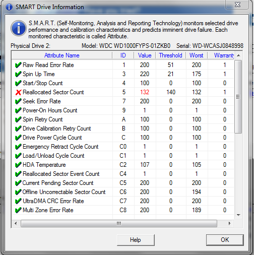 Výsledný verdikt je asi takový, že disk je pořád ještě v dobrém stavu (viz Test result), ale prognóza vývoje jeho stavu nepatří mezi nejpříznivější a stav disku se patrně bude nadále zhoršovat.