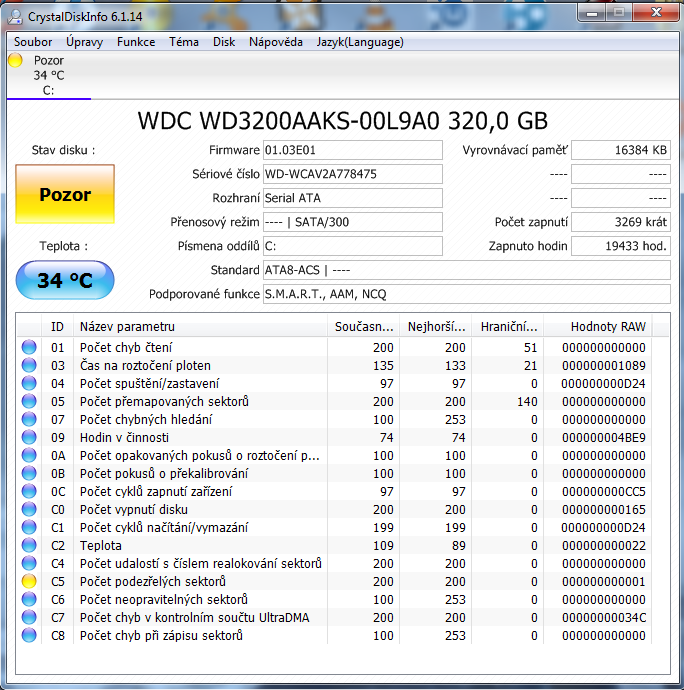 V příloze je (doufám) ten výsledek. Bohužel s Crystaldiskinfo pracuju poprvé,takže nevím jestli jsem poslala to,co potřebujete vidět. Omlouvám se za případnou chybu..