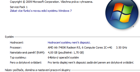 Dobrý večer, na nově nainstalovaném PC mi Win 7 detekují cpu AMD A6-7400K - viz příloha, ale fyzicky je tam osazen A10-5800K. V čem je problém?
