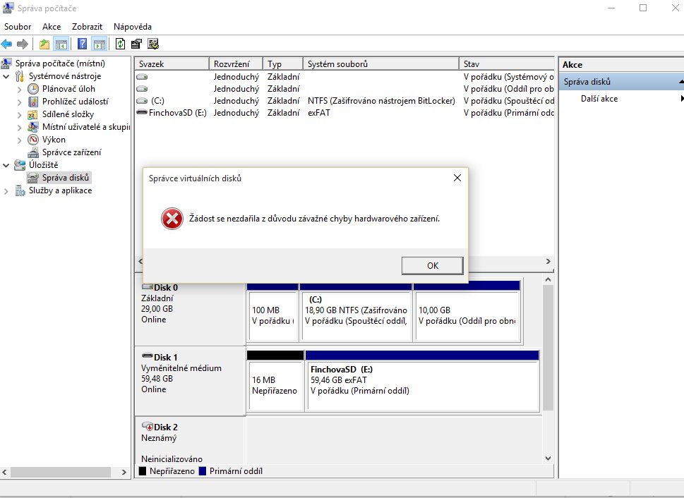 včera jsem chtěl zálohovat soubory na PC na externí HDD WD My Passport. Asi po hodině a půl v půli kopírování dat, se mi všechny okna hodily do "neodpovídá". Po půl hodině nezměny jsem zkoušel ukončit procesy a nic se nedělo, takže přišel na řadu restart (systémem). Po nastartování PC už se ale do HDD nemůžu dostat, můžu ho odpojit ale najdu ho "jen" ve správě disků ale to tak, že s nim něco neni v pohodě. Stejně tak mi nejde ani spustit diagnostika v WD Drive Utilities.