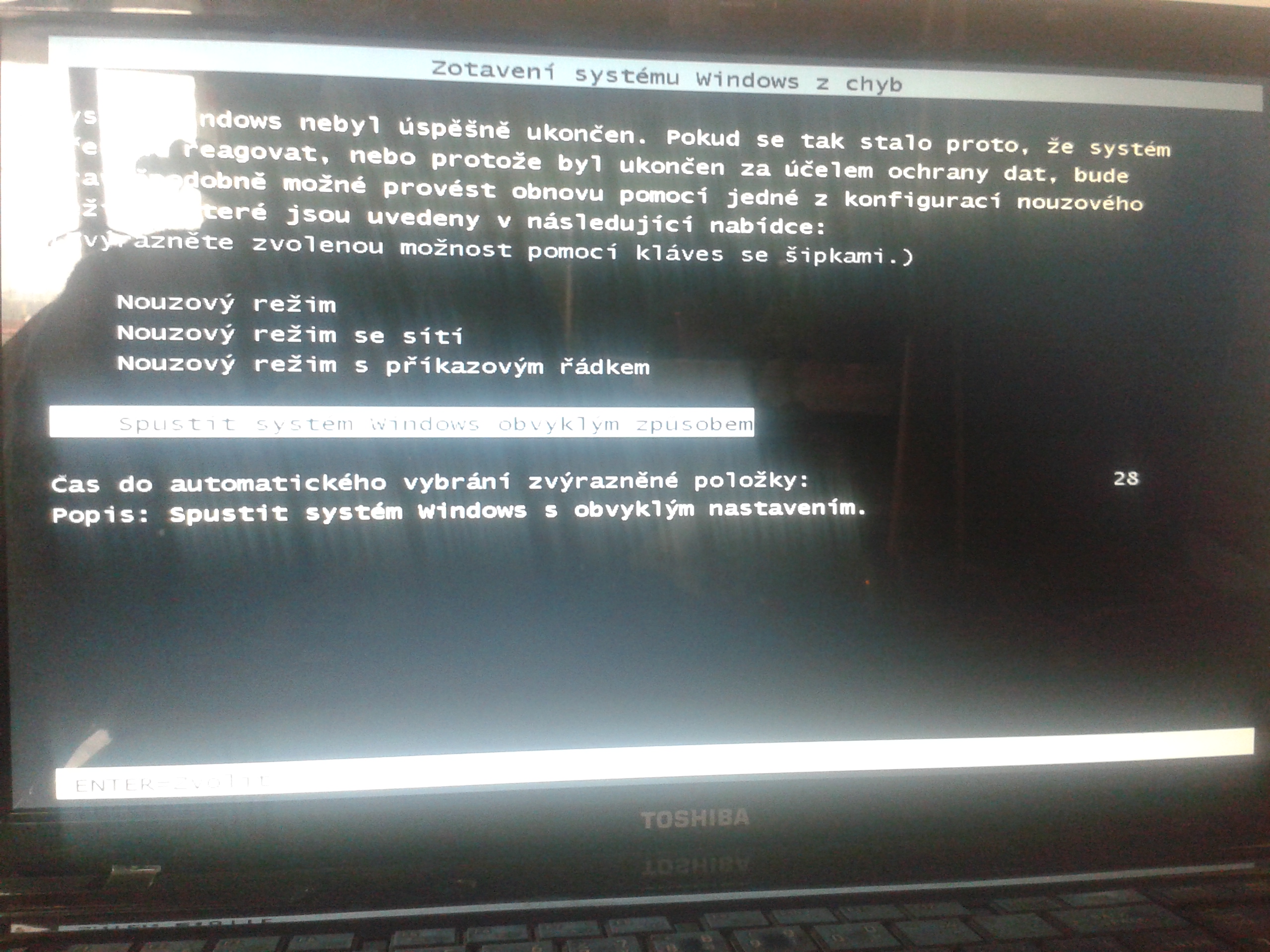 Zvolil jsem teď po resetu CMOS spustit v nouzovém režimu a myslel jsem si, že to nic nedělá. Asi po 10 min koukám, že na monitoru je nahoře napsáno "Načítání souborů sytému windows", dole "počkejte prosím..."