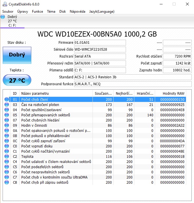 V CrystalDiskInfo mi to píše že je stav dobrý. ale nevím co přesně je: Počet chyb čtení. Já jsem si právě koupil novou základovku a problémy jsou menší. Když jsem totiž měl starou, tak mi to třeba 1,2x seklo internet a potom i celí PC třeba když jsem si pustil Film ve VLC a stahoval jsem tak se film komplet seknul a i PC. Jo a třeba nedávno jsem hrál GTA 5 Potom při skončení mise v Online mi to hodilo modrou smrt zmazalo mi to SinglePlayer postup a snad i mody do skyrimu. Reinstal Windows nepomohl. Třeba u Batman Arkham Knight se seká i zvuk.