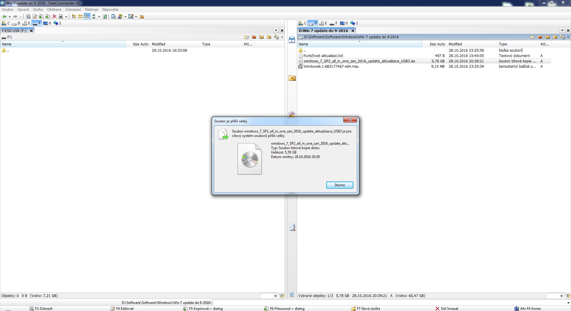 Potřebuji nainstalovat windows na notebooku, který nemá mechaniku. Mám ISO obraz windows, který má necelých 6 GB. Když dám kopírování toho iso souboru na flashku, tak vyskočí hláška, že soubor je na cílové umístění moc velký.