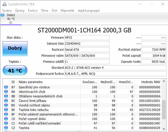 Ten HDD kdyz pres nej fouka vzduchu by nemel mit 42 stupnu. Vadne lozisko obvykle zpusobuje nadmerne zahrivani disku.