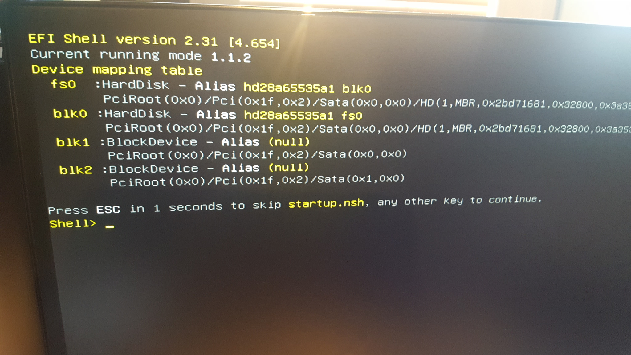 Zkusil jsem to znovu pozapojovat a po zapojeni hdmi do grafiky a zapojeni pc se zobrazi toto. I kdyz dam esc, i jakoukoli jinou klavesu, nic se nedeje. Porad tam mam toto, muzu do toho psat.