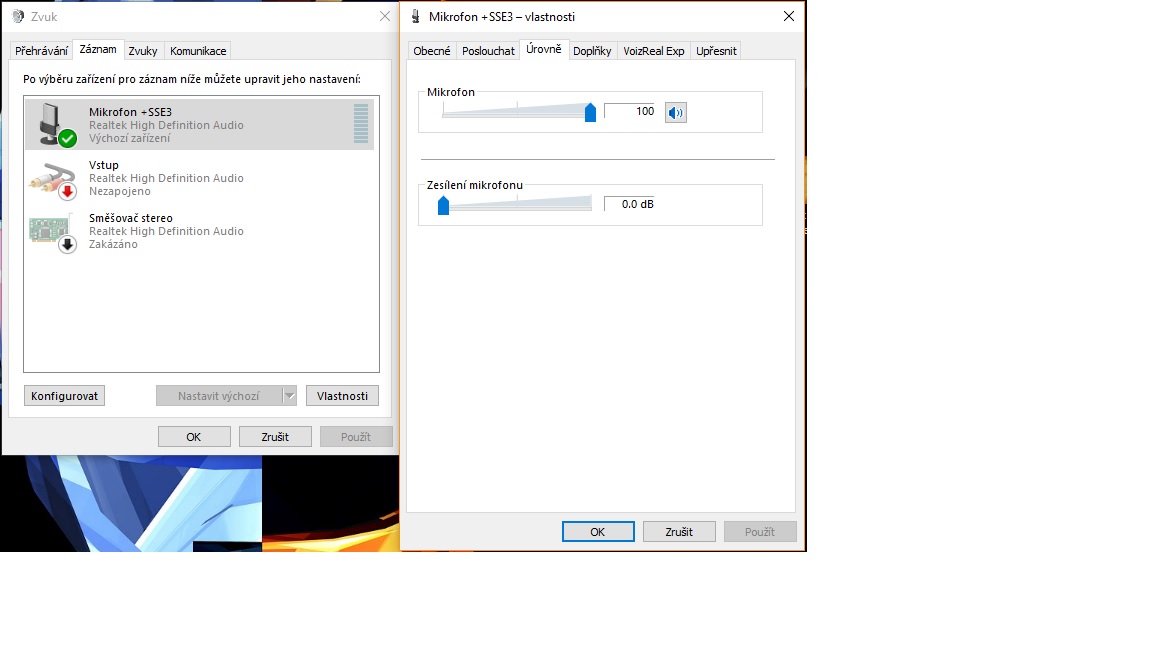 Zesílení jsem žádné nezapínal. Akorát jsem si hrál s hlasitostí a to taky nepomohlo.. A žádný jiný mikrofon není (webku nemám) jenom jsou zapojeny sluchátka. Nevěnoval bych tomu pozornost, ale tohle je opravdu extrém..