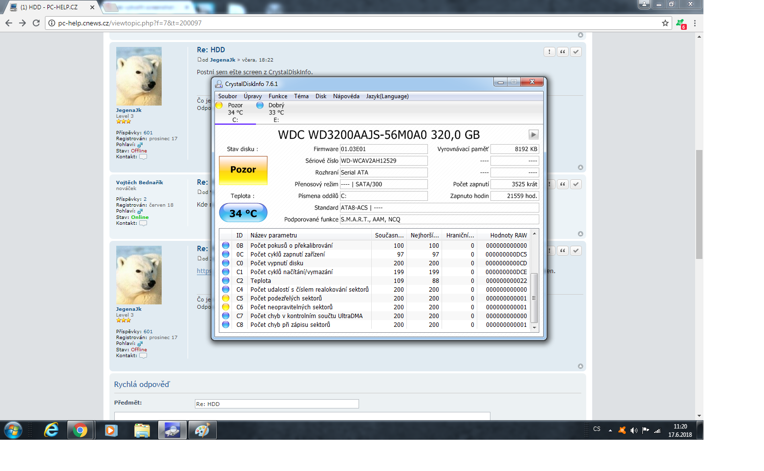 Problém má WD 320,0 GB . Teď jde o to jestli je sytémový.