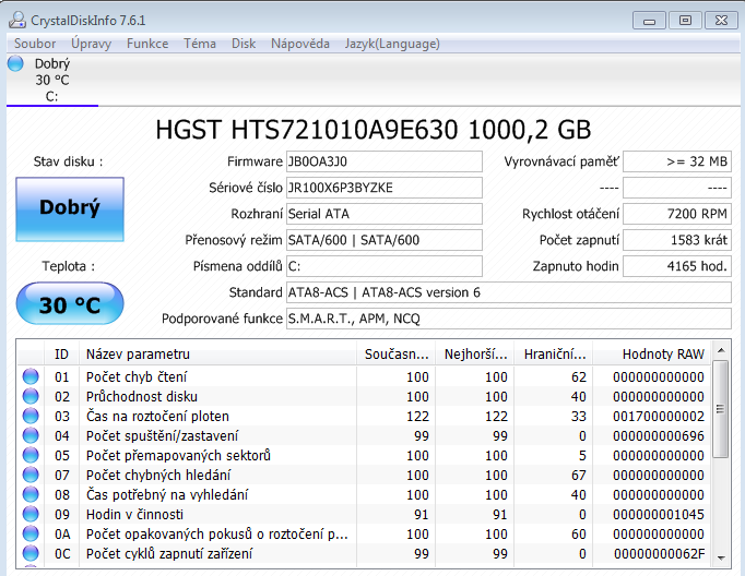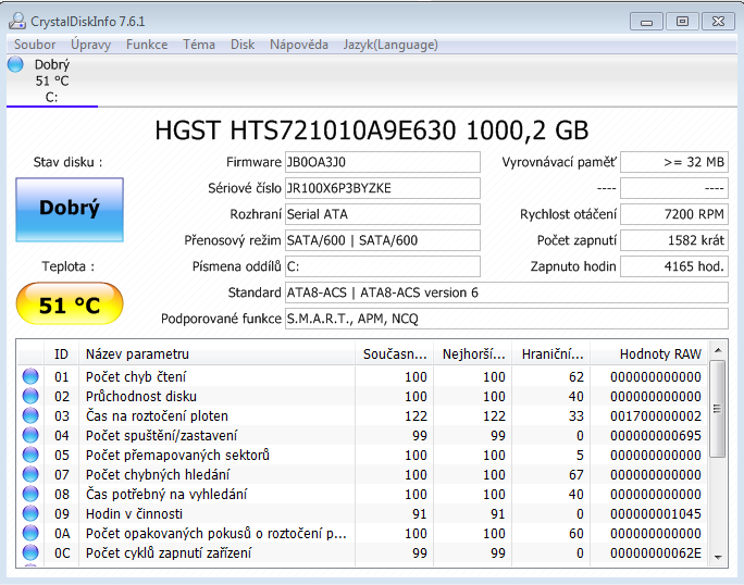 Je tu HDD, podle Crystal Disk Info je stav "dobrý".