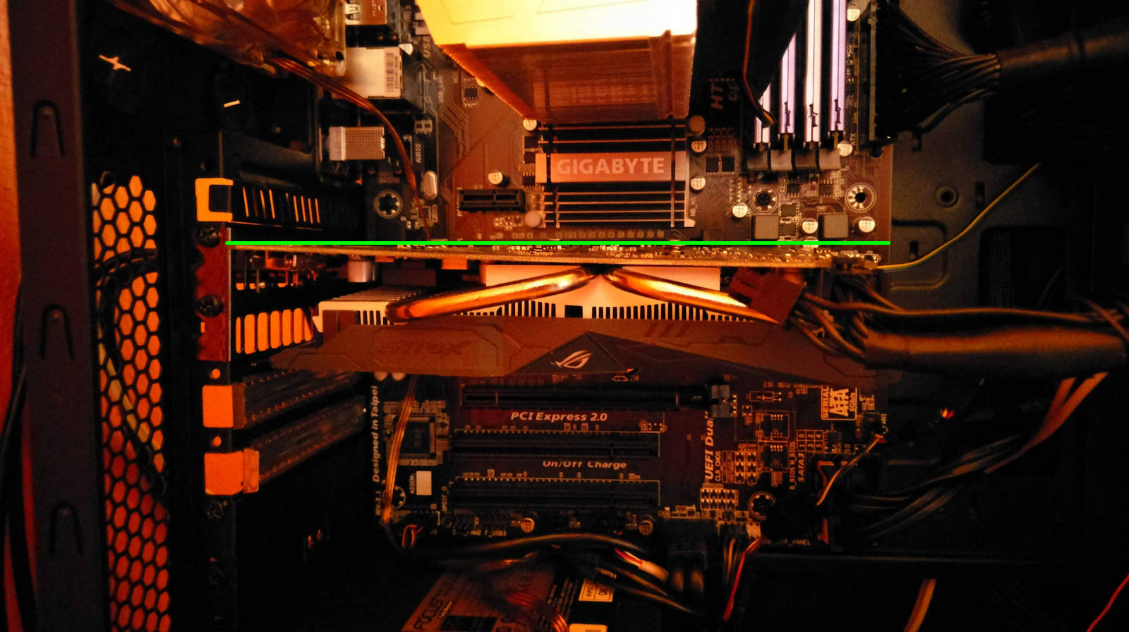 Grafiky zvyknú byť prehnuté,hlavne tie väčšie ale to neznamená, že je chybná grafika.Možno ju ťahajú aj káble, ak ich nemáš nejako prichytené.Použí sťahovaciu pásku https://www.schaecke.at/aus/Kategorien/Installation/Befestigen/Kabelbinder/Schneider-Electric-Thorsman-Cintura-Kabelbinder-durchsichtig-3%2C6x295mm/p/4368894 a trošku ju upevní,vyrovnaj.