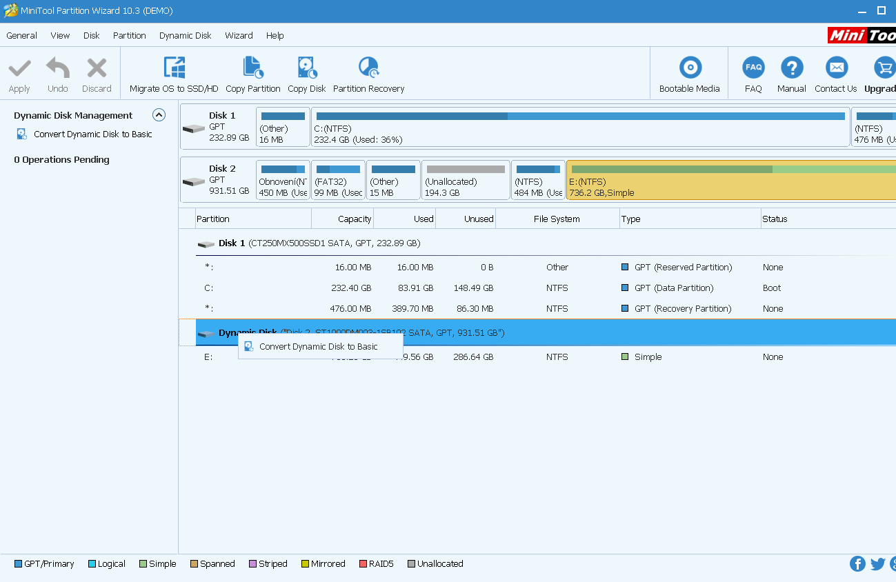 Pozeral som na screen zo Správa diskov, tam je Disk1 ten dynamický.