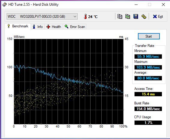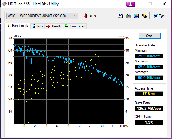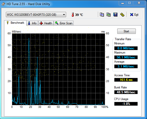 Nazdar všichni chtěl bych zkontrolovat 2 HDD a jestli se hodí na zálohování jedná se o WD3200BEVT-80A0R a o WDC WD3200LPVT-00G33T0 a prosím o doporučení boxu na hdd. Na obrázcích mužeme vidět že notebook když běží os má velky acces time ale když byl připojen k mému pc tak se zdálo vše v pohodě tak proto bych ho nechal na zálohování a na hdd WD3200LPVT-00G33T0 bych dal operační systém-Nejvíce mě udivuje že ta rychlost když je připojen mém pc tak je docela v pohodě.