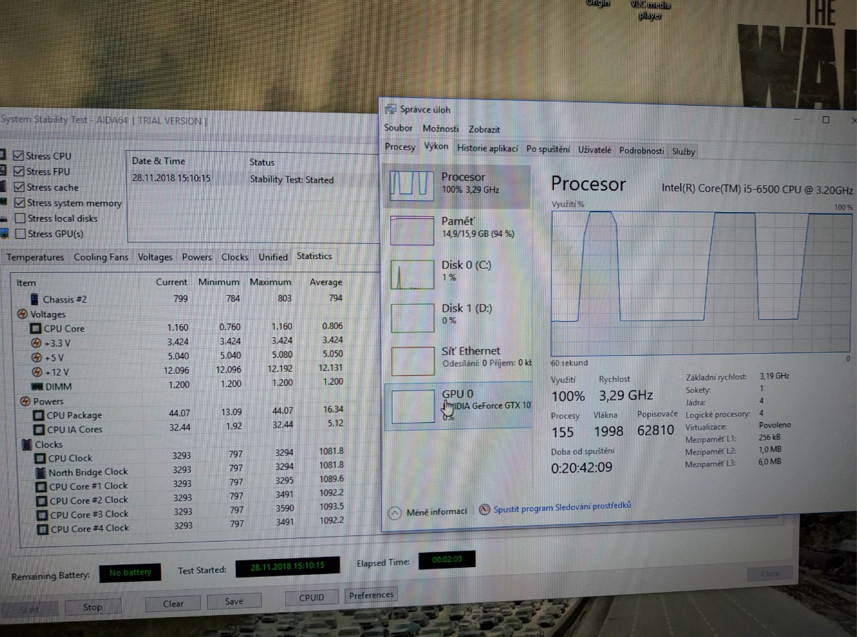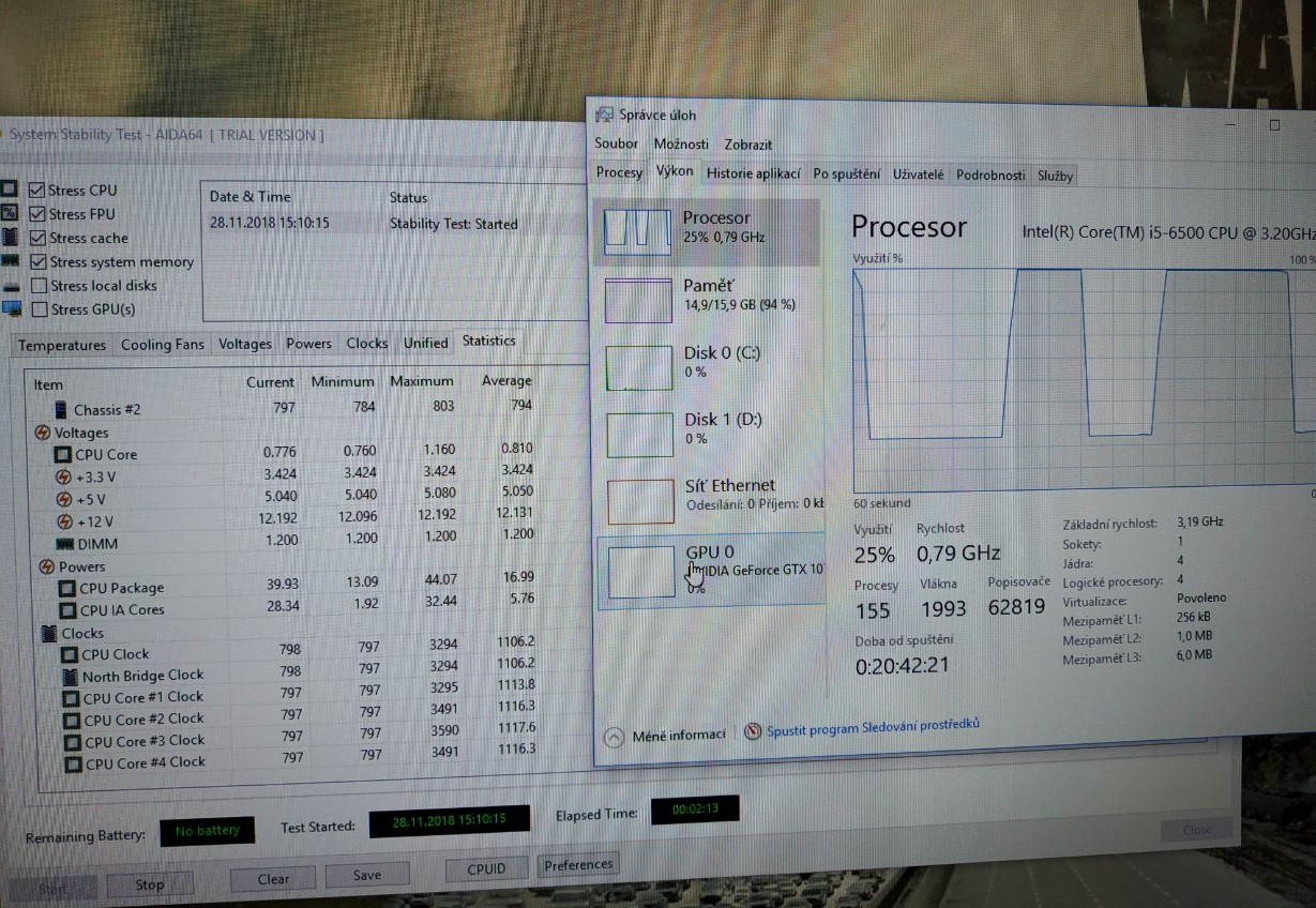 Dnes jsem to zkusil znovu PC přez noc vyple, procesor po zmáčknutí start v tom programu AIDA64 jen nějakou dobu jen na těch 800 po nějaké chvíli se rozjel na plno ale vždy to po chvilce spadlo opět na 800 to dělilo tak 4 mi hry a potom procesor spadl na těch 800 a už se více nezvedl potom jsem to stopnul