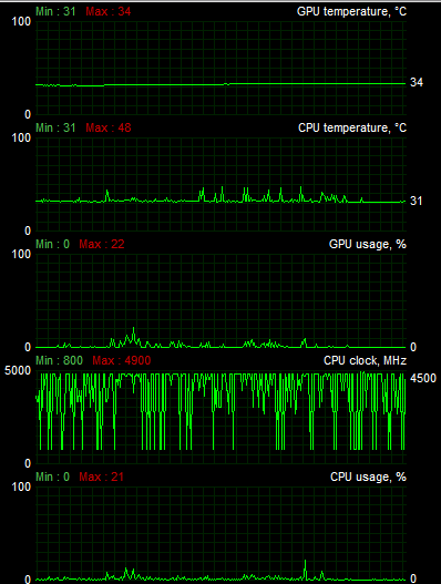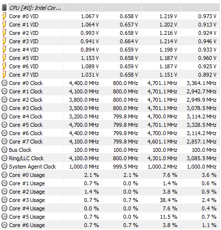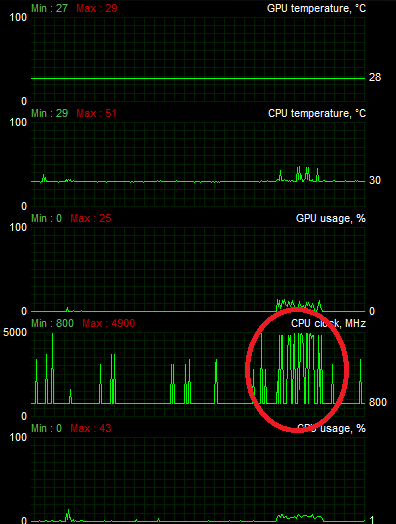 na pozadí neběží nikde nic... a teď jsem přišel na to, že když nehýbu myší, tak je to asi ok.. zakroužkovaná oblast se změnila jen když jsem začal točit myší dokola.. nemůže takový kolísání frekvence procesoru nějak ublížit, přes to že teploty jsou naprosto OK???