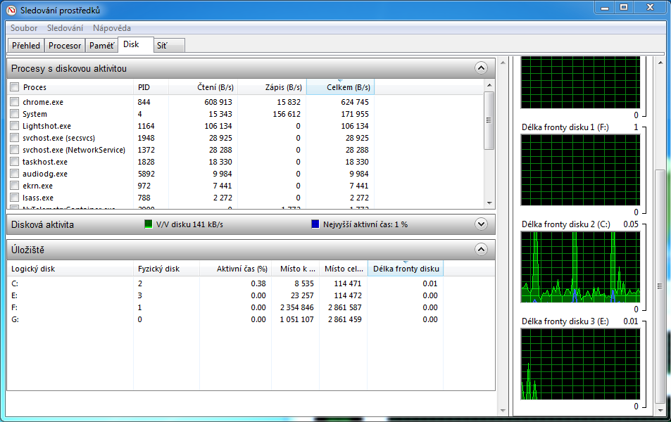 Disky také nevytížené, jen délka fronty na systémovém disku je možná velká možná malá... nevím. Přikládám screen.