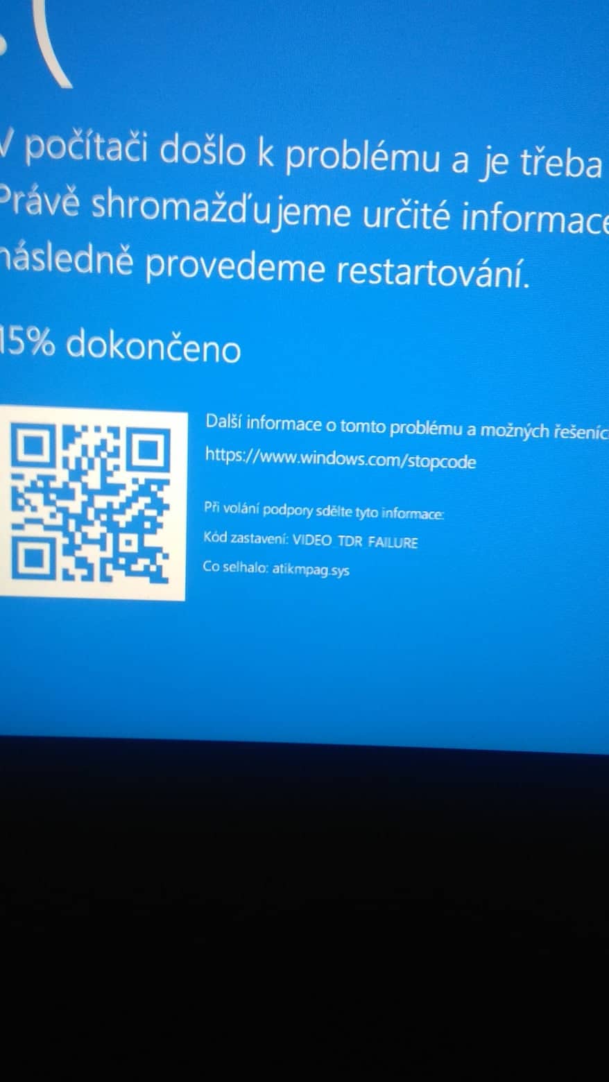 Zdravím. Dne jsem zaznamenal problém, když jsem dělal něco windows. Instaloval jsem doporučené ovladače grafické karty a zničeho začal problikávat monitor, asi tak 10 krát probliknul, pak se vrátil na plochu. Ovladače se mezitím nainstalovaly. Poté se , ale počítač restartoval a naběhla bluescreen, stihl jsem to vyfotit. v příloze foto: