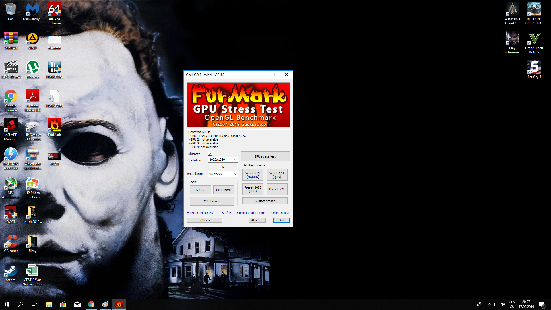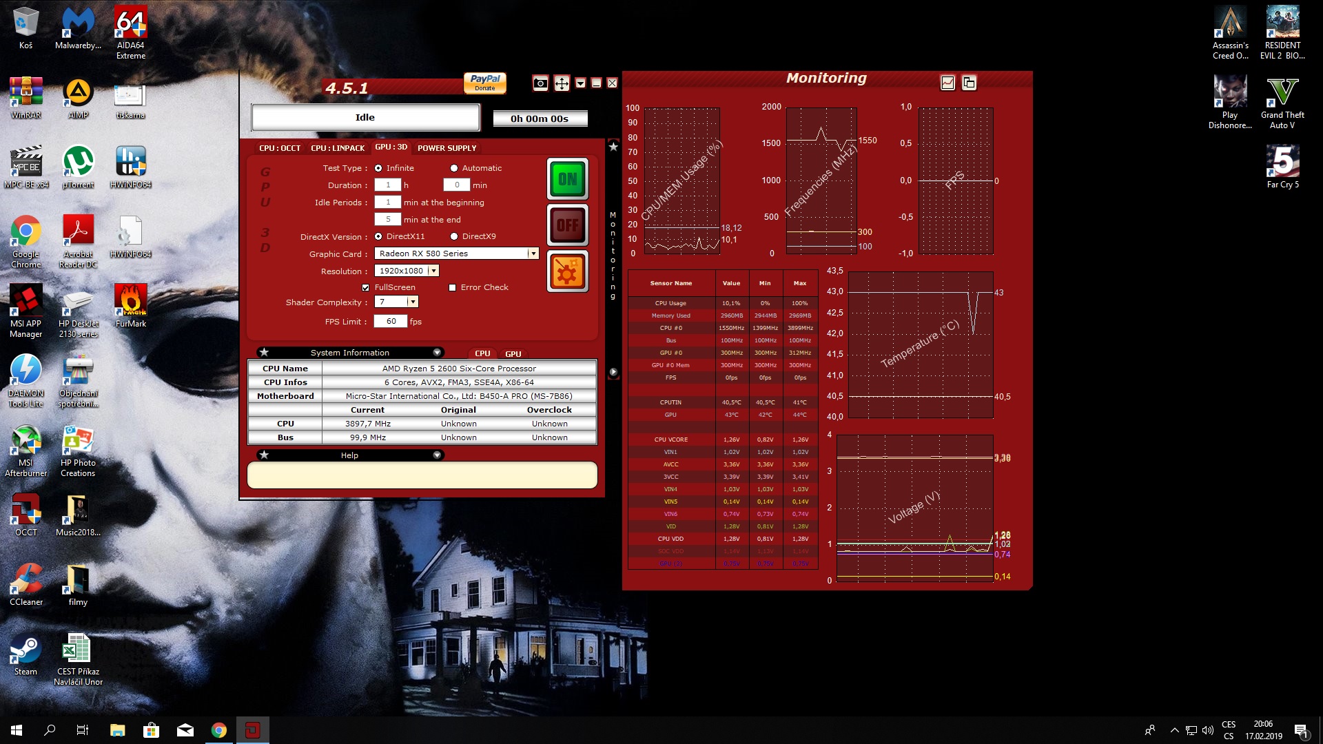 Přišel jsem na novou věc když zapnu OCCT test grafiky gpu:3d, tak jakmile kliknu na zapnutí on, tak se počítač ihned restartuje. Zkoušel jsem pro jistotu i jiný test furmark 3d, nechal jsem PC testovat asi 5 minut a všechno v klidu. Grafika měla nejvyšší teplotu 62 stupňů. Přikládám fotky nastavení testů.