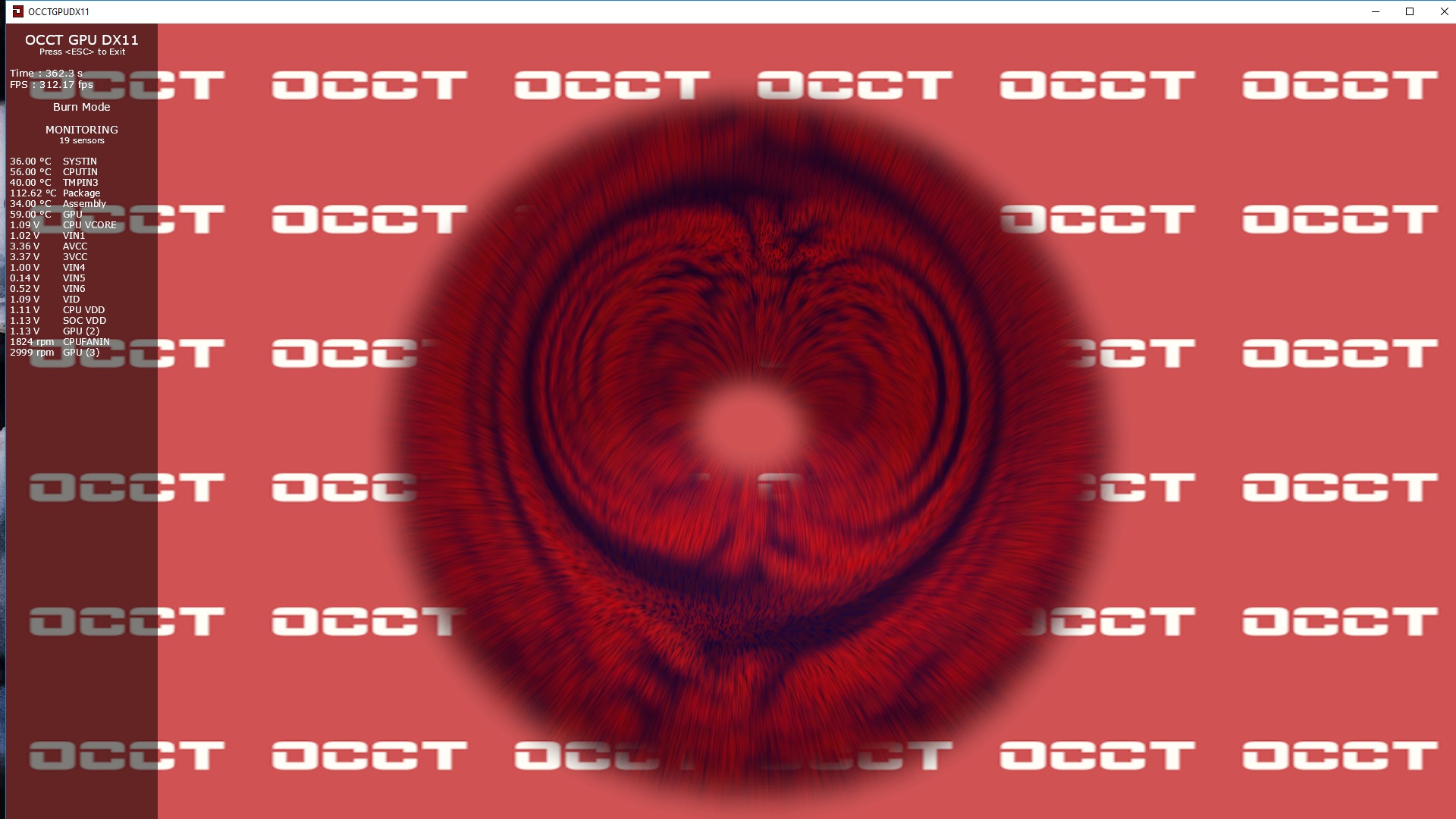 Ještě jsem zkoušel v OCCT na 5 minut PSU test, který běžel relativně v pohodě, jenom se chvilkama sekal ten chlupatý donut a překvapila mě ta teplota package přes 100 stupňů.