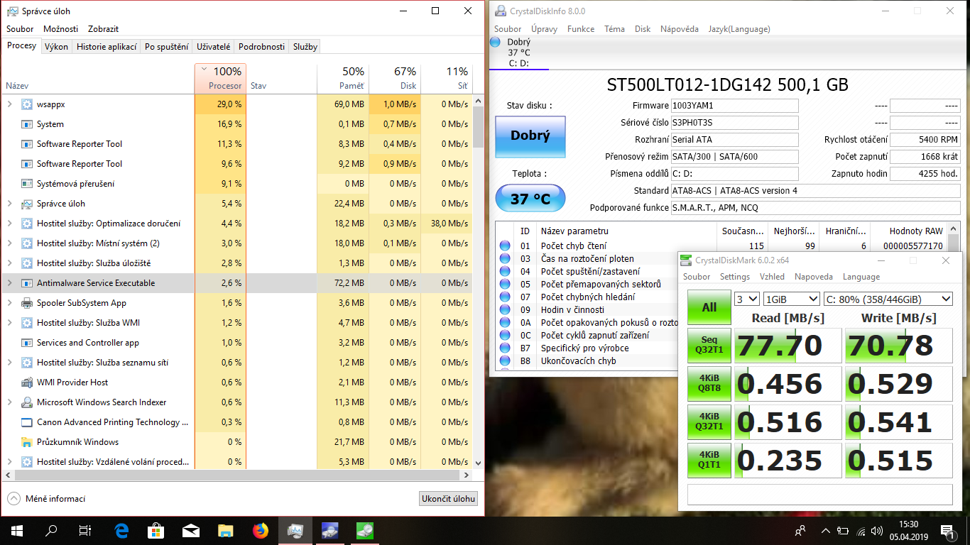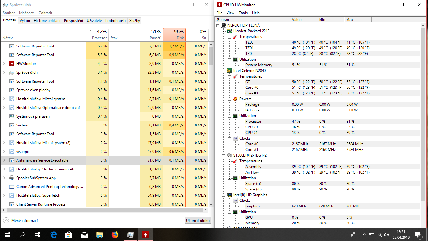 vím slabota nic od něj nečekám jen je šíleně zasekaný. procesor jen pri spustenem hw monitoru 100% využtí a disk 100% využití ikdyž se nic nedělá. ve správci uloh nevidim nic co by disk vytěžovalo. je to jen na internet a nějaka ta prezentace do školy.. žádne hry nic to snad ani nejde :D předem děkuji za rady a přikladam screeny.
