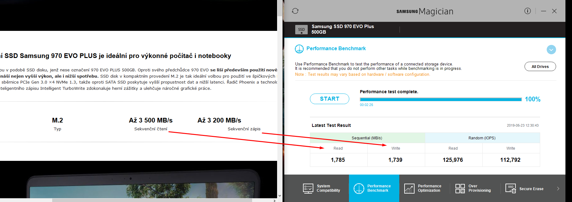 Ahoj, po osazení nového SSD NVMe s sekvenční rychlostí čtení 3500 MB/s a zápisu 3200 MB/s mi benchmark výrobce Magician od Samsungu ukazuje rychlost sekvenční rychlostí čtení i zápisu pouhých 1,7 MB/s, což jsou nějaké tisíciny inzerovaného výkonu. V čem může být problém? Disk se při tom benchmarku ohřál na 60 stupňů, ale podle prodejce je v pořádku u 70 stupňů a vliv na výkon by to mělo až při více něž 90 stupňích.