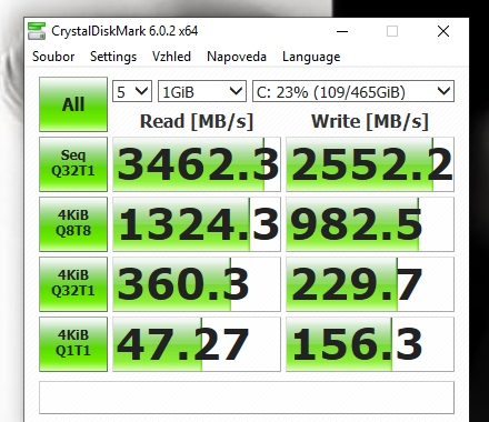 SSD čtení 3500 MB/s a zápis 3200 MB/s