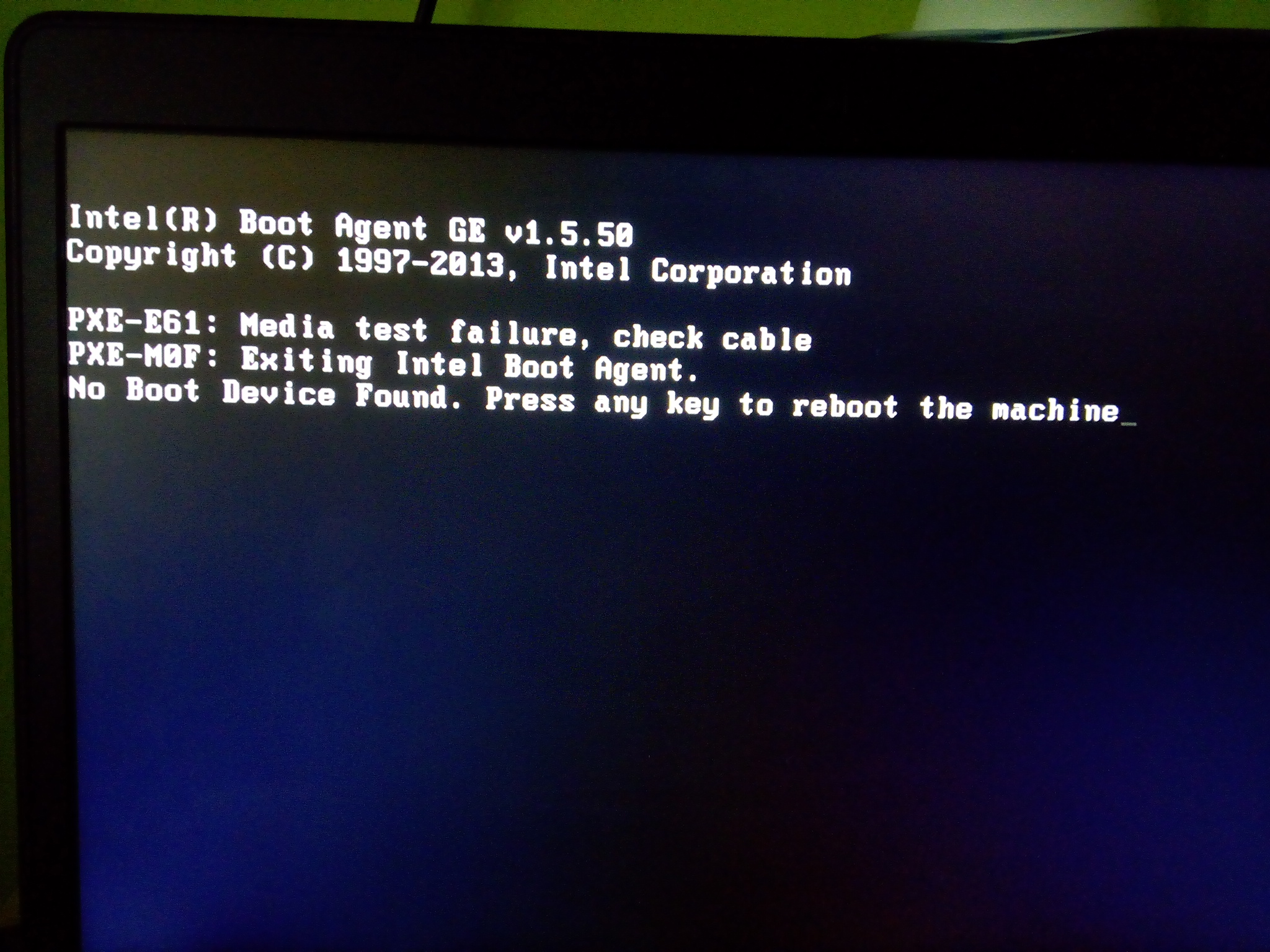 No Boot device Found. Press any key to reboot the machine.