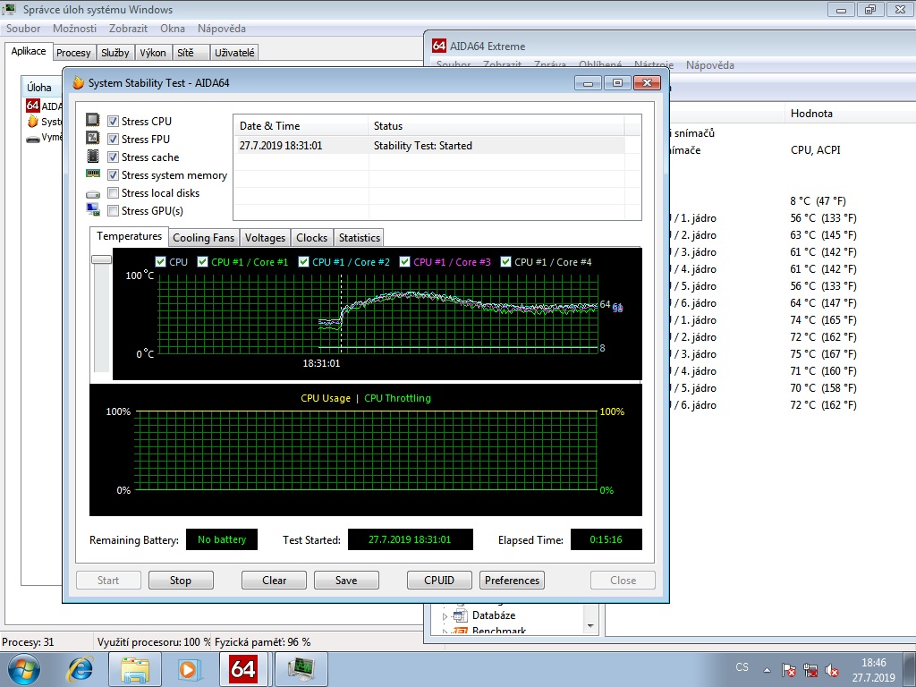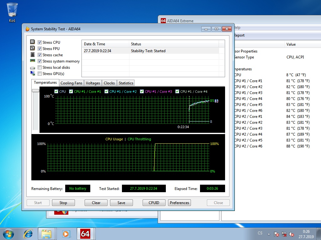 dávám pro Earla dohromady HP Proliant DL 380 G7 z odkazu níže a trochu tápu s teplotami. Na obrázcích je stress test z aida 64, první optimal cooling, druhý increased cooling. Když jsem včera zkoušel to samé na optimal cooling tak aida hlásila i throtling, ovšem po celou dobu 0% a po vypnutí stress testu se konečně pořádně roztočili větrkáky. Dnes to samé, ale bez throttlingu, přitom teploty některých jader vyletěly na 90°C, přitom dioda na čelním panelu ind. přehřátí se nerozsvítila. Samozřejmě increased cooling má teploty dobré, ale zase je z toho perfektní simulátor vysavače.