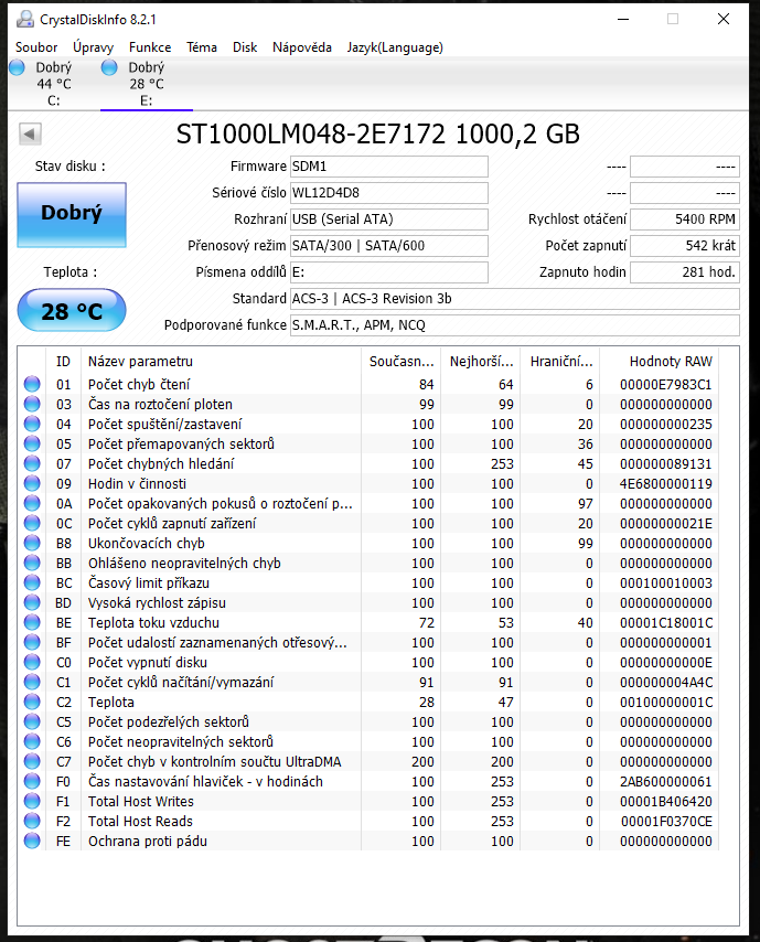 Jaky stav disku ukazuje Crystal Disk Info ?