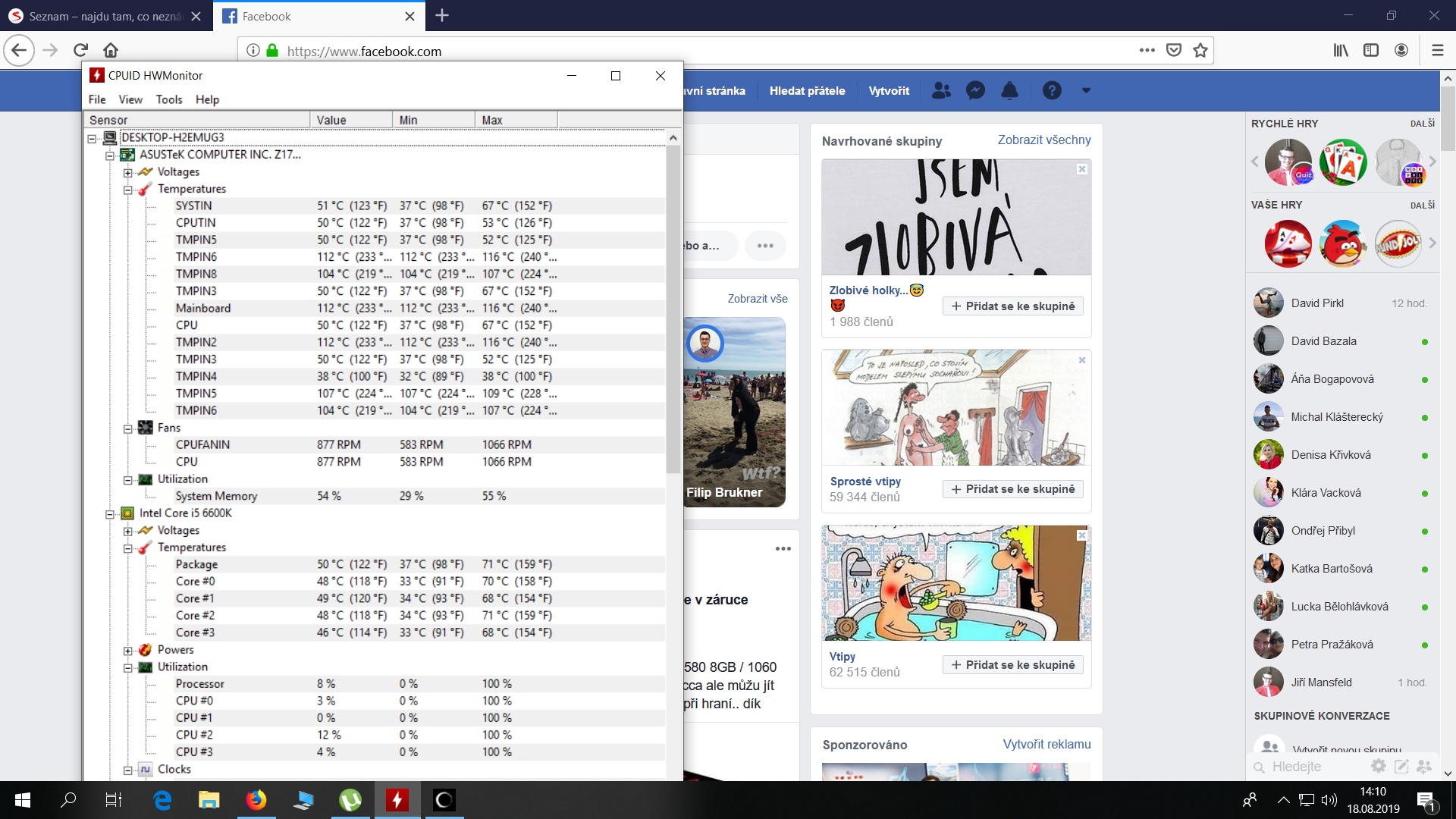 Zitra pošlu screen ze hwmonitor. Tam ty teploty jsou vsechny.