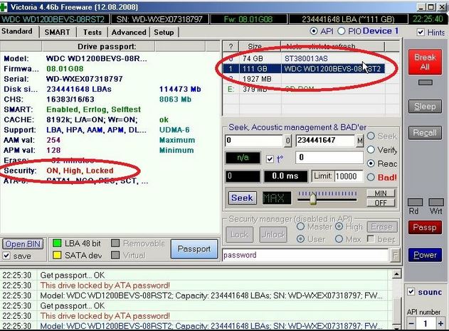 Zkratka disk vytazeny s notebooku s aktivnim DriveLockem.