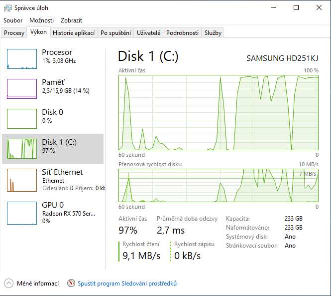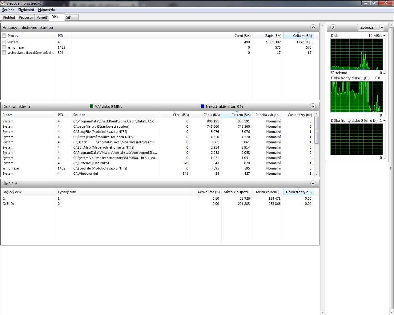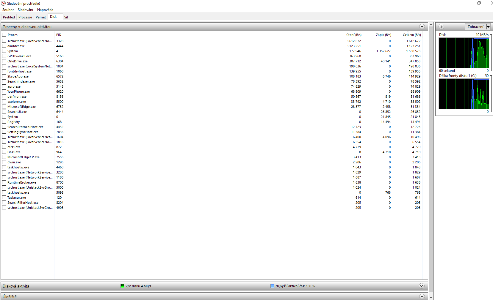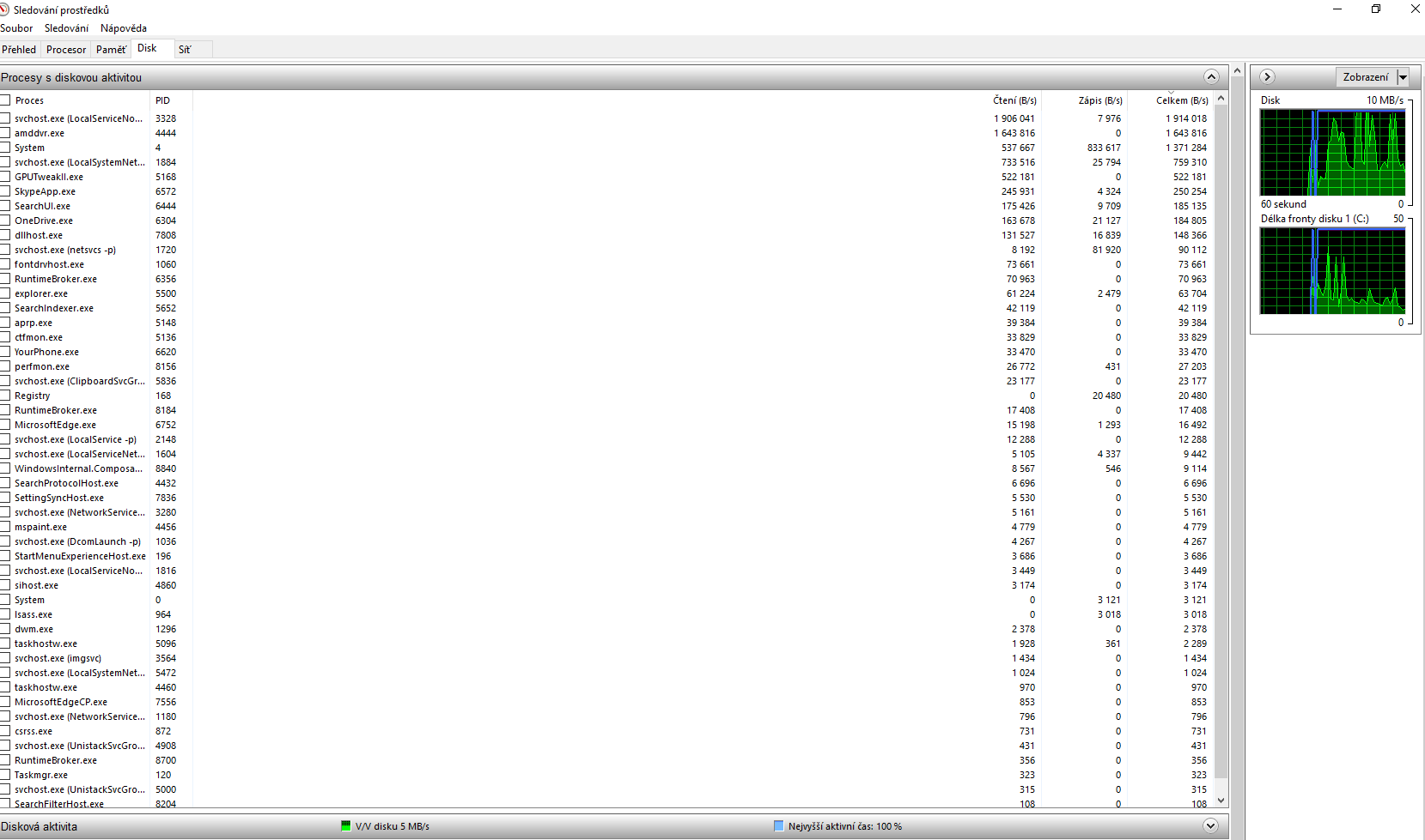 Tak se nejdříve podivej do Spravce uloh, co ty disky vytěžuje...