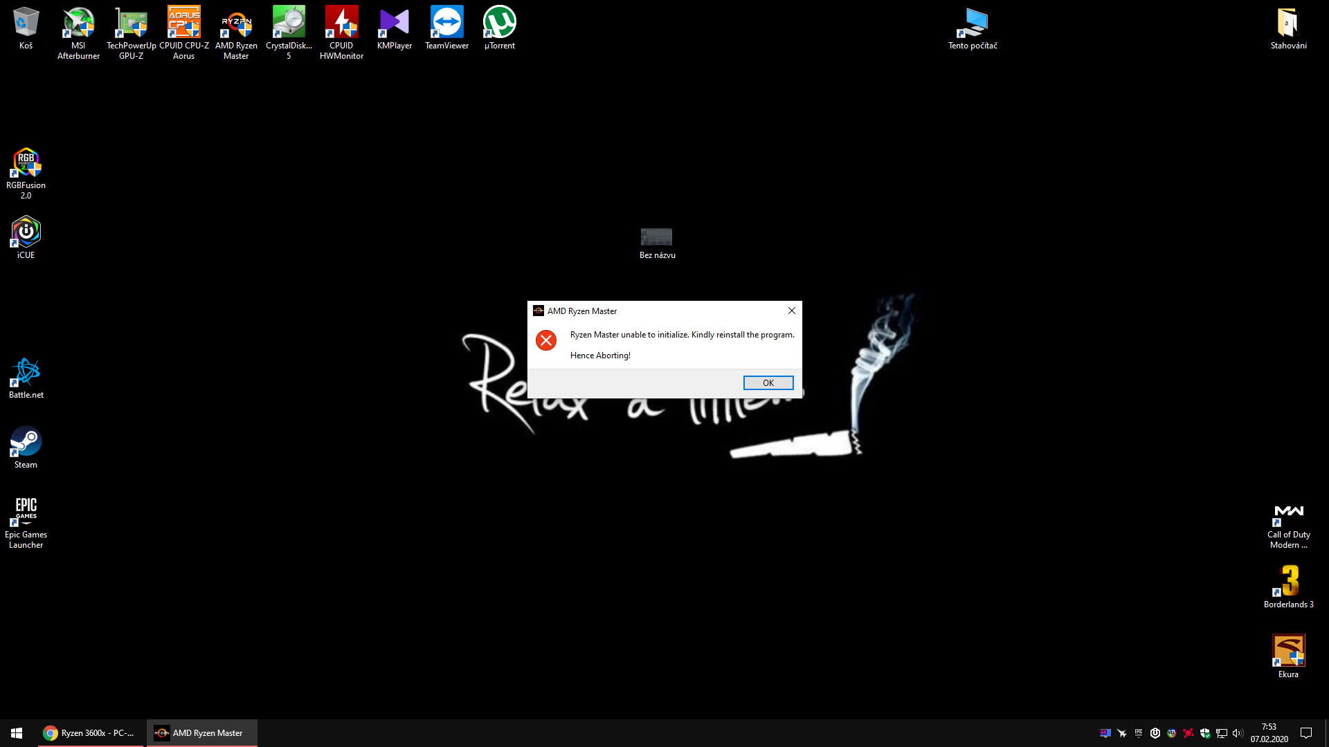 po vypnutí a znovu spuštění ryzenu opět ten samý error a zas to nemůžu nahodit viz.: